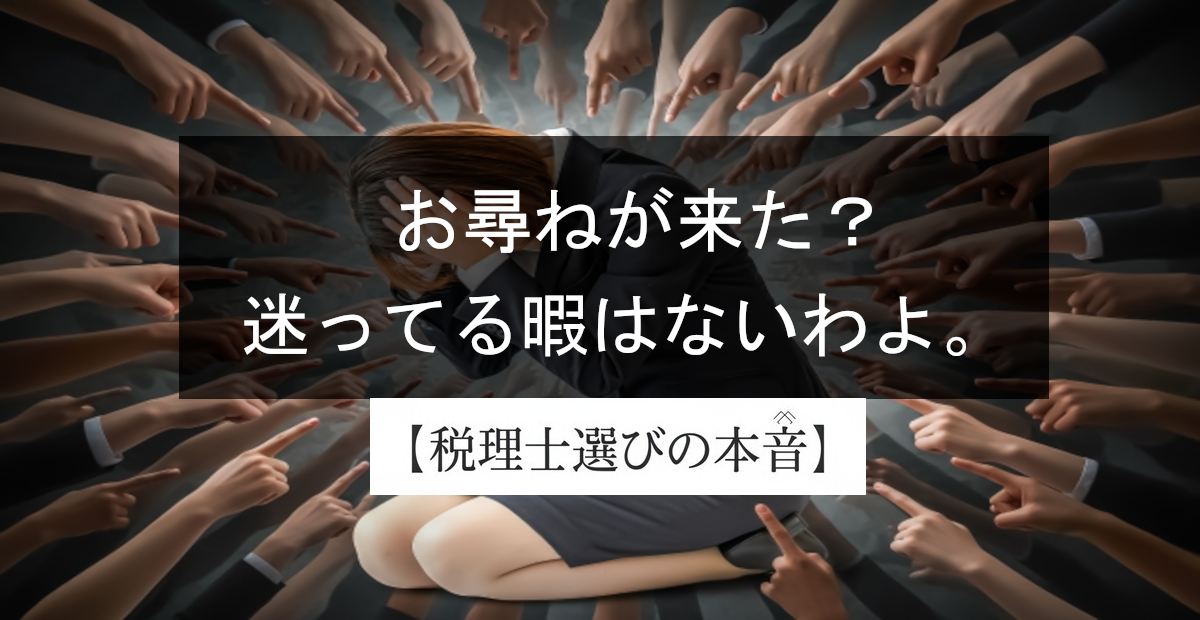 はっきり言ってあげるわ。元・税理士事務所スタッフとして、地獄のような税務調査を間近で見てきた私からすれば「お尋ねが来た時点で、プロに相談しないのは、ノーブレーキで崖に向かって車を走らせるようなもの」よ。